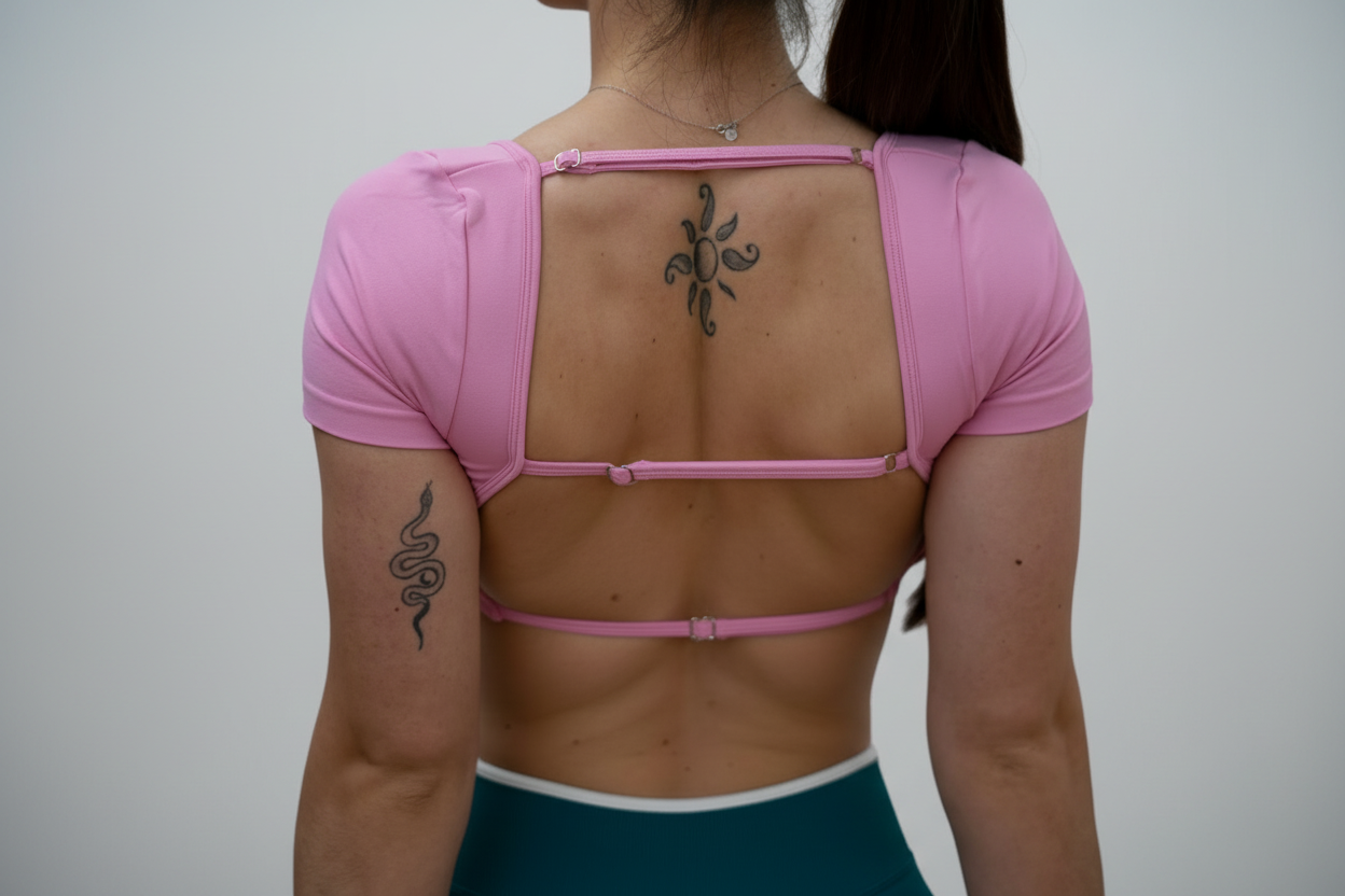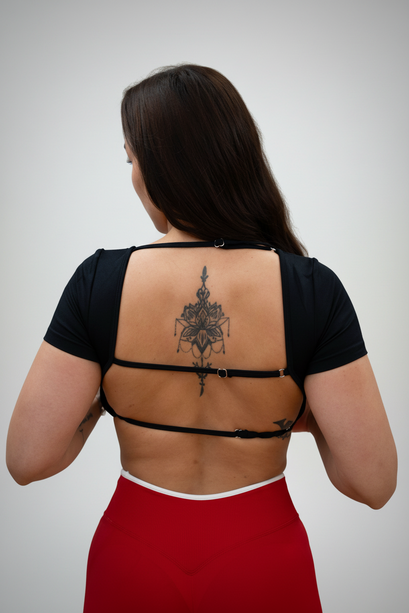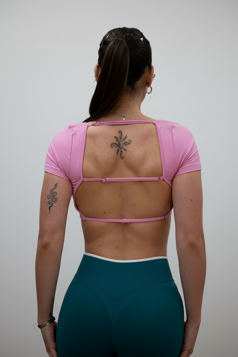 La espalda abierta con tiras finas regulables convierte esta prenda en un básico diferente, con un toque moderno que marca la diferencia. Es ideal para entrenar, para tus looks athleisure o para esos días en los que buscas sentirte cómoda sin renunciar al estilo.